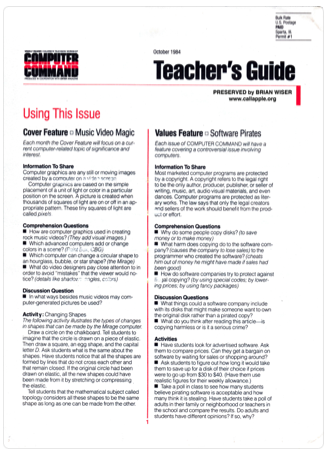 Accompanying this October 1984 issue is a Teacher’s Guide and introduction letter. Were any monthly magazines produced beyond this promotional issue? That’s unknown. If you do know, please let us know.