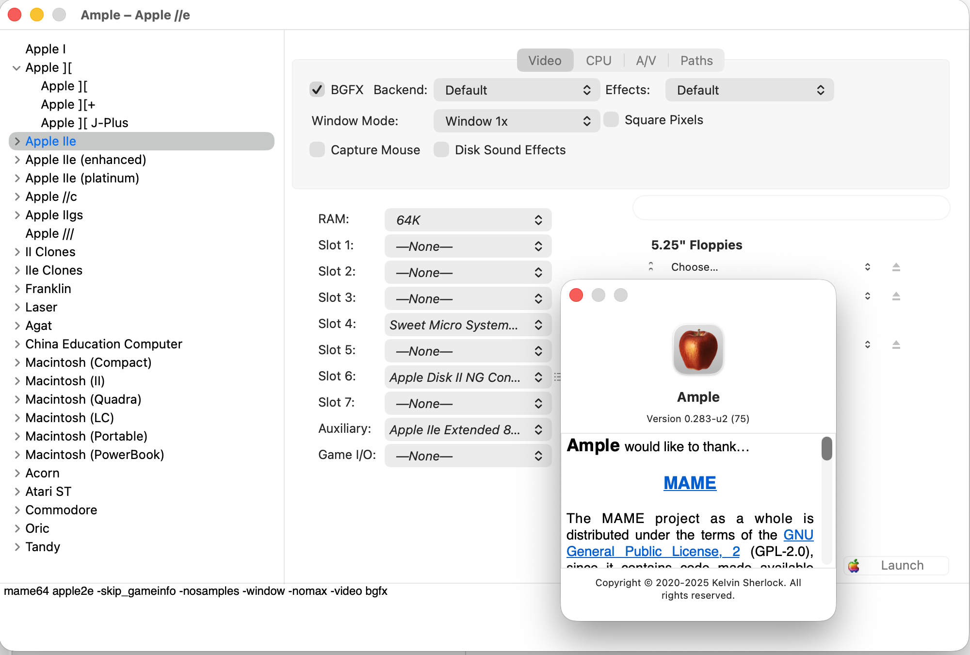 The Ample emulator interface for MAME on MAC OS has been updated. Ample version 0.283 is the 75th release of the interface and brings it in line with MAME version 0.283. Some of the current features of the Ample emulator interface include: