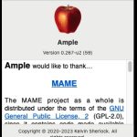 The Ample graphical interface for Mac OS X has been updated. Ample 59 with its retro Apple II, Apple II clone and Retro Mac series primary focus, has been updated to include the items included in the MAME 0.267 emulation system. The Ample interface has been updated recently to also include Atari, Tandy, Dragon and Oric computer platforms. Ample 59 can be downloaded from the Ample Github page at:https://github.com/ksherlock/ample