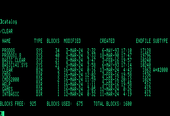 I think I have worked on this enough. Here is my command line demo called CLEAR. Included with a few commands. It is mostly meant for 80-cols, some commands won’t display properly in 40-cols. Although most of the commands will work on a II+. The most powerful command is included. The ALIAS command will let you make aliases of Basic, Binary and System files.