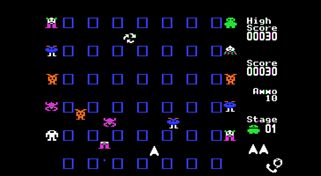 Seattle, Washington — November 30, 2024 — Apple Pugetsound Program Library Exchange (A.P.P.L.E.) is pleased to announce the immediate release of Droid Raid – a new, exhilarating arcade-style Apple II game developed by Raphael Rezende. It offers a captivating experience that puts players’ skills and endurance to the ultimate test. With fast-paced gameplay, endless levels, and challenging mechanics, Droid Raid promises to deliver a challenging and unforgettable gaming experience as you maneuver through the grid, battling the endless levels of aliens.