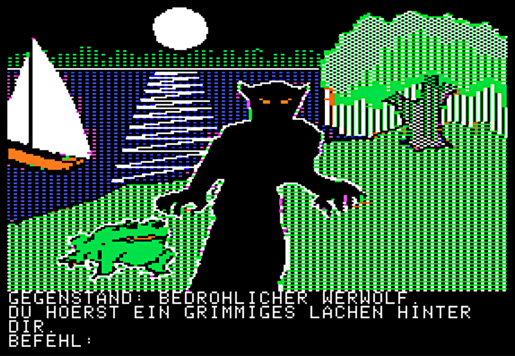 Back in 1985, Transylvania was a popular adventure game written by Antonio Antiochia and published by Penguin Software.  Henning Stams, a fan of the game, wanted a version in his native German language and created one!   He dubbed the conversion “Transsylvanien: Ein Spannendes High-Resolution-Spiel” (a fascinating high-resolution game).