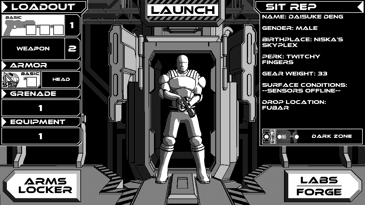 So, I looked up if anyone else did black and white games like the old Macs. The only ones that stood out were SilverQuest and Lucas Pope’s Return of the Obra Dinn (which is looking awesome, and I am totally going to buy it when its released). That was the final decision to go black and white – if Lucas Pope is gutsy enough to go that direction, then we’ll jump on board with him. (Side note, we have already reached out to Lucas Pope, and he said he likes how our game looks).