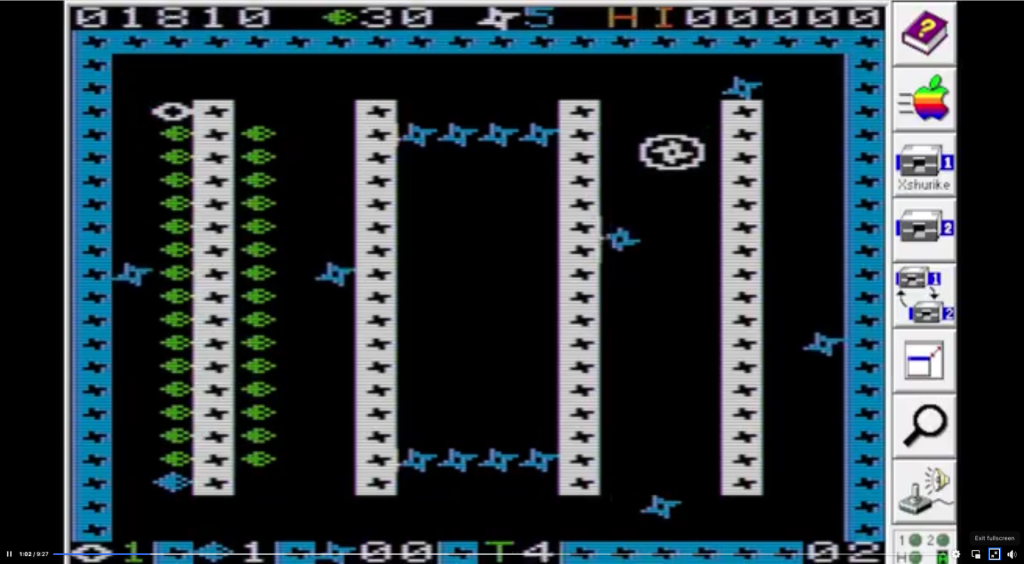 I present Shuriken, the seventh game I have written in C with my Cross-Lib framework (https://github.com/Fabrizio-Caruso/CROSS-LIB), which provides a hardware abstraction layer, several tools and a build-chain for nearly all 8-bit architectures.