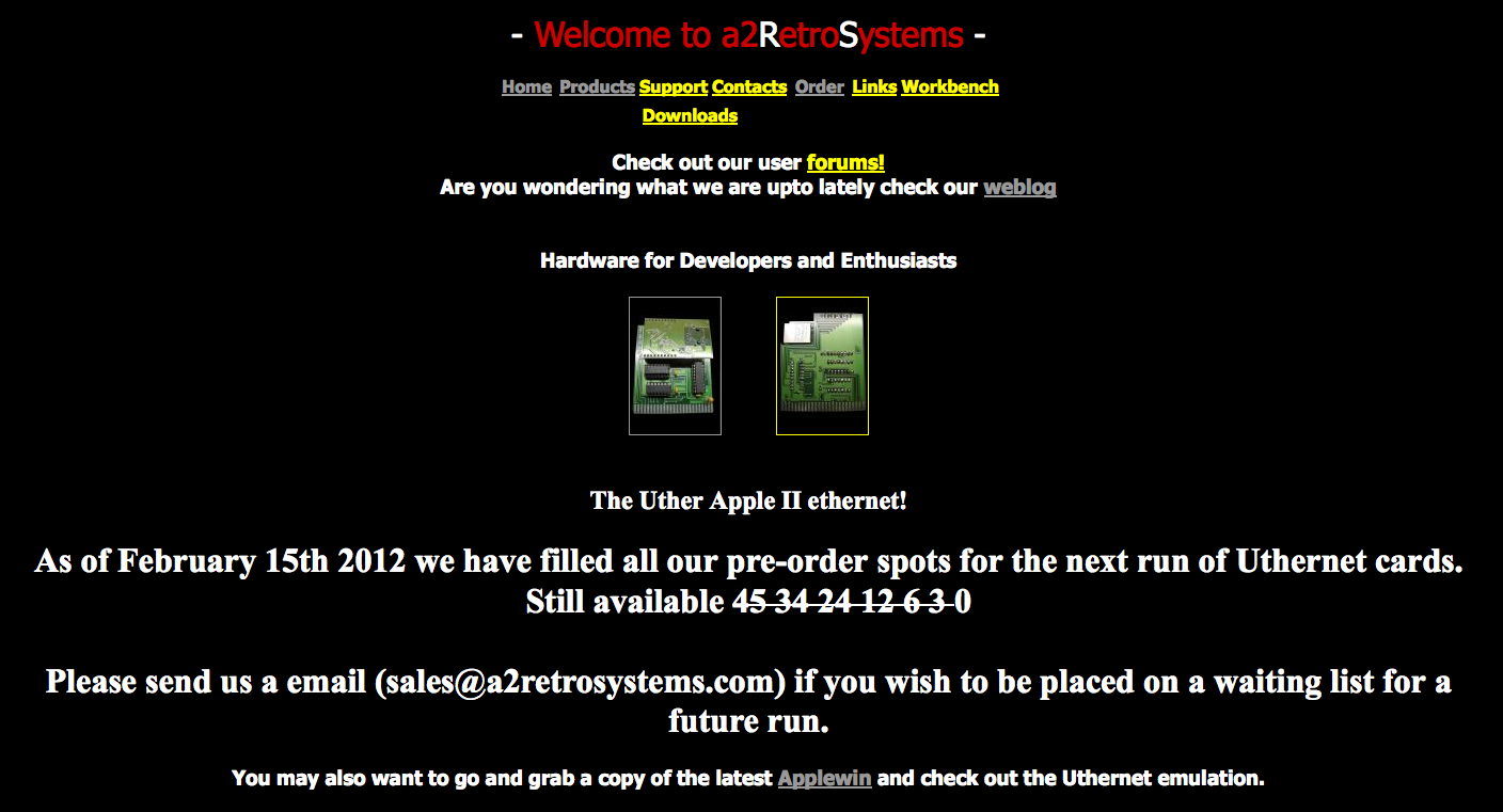 The A2RetroSystems produced Uthernet card for the Apple ][ series computer has proven to once again be a big hit. Glenn Jones, the creator of the card has managed to sell all of the 45 units that were initially set for pre-order. At this time, it is unclear when another run of the cards will be produced, but you can check out the A2Retrosystems page to add your name to a waiting list for the next run or for more information about the Uthernet Card at: