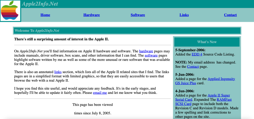 The Links section is a mess. I just copied them all from my old “Working Apple II Links” site, which hadn’t been updated in years. I know a lot of the sites are gone, and some have changed hands and direction, and then there are some new ones that aren’t in the list yet. I’m going to try to go through and clean it up soon.