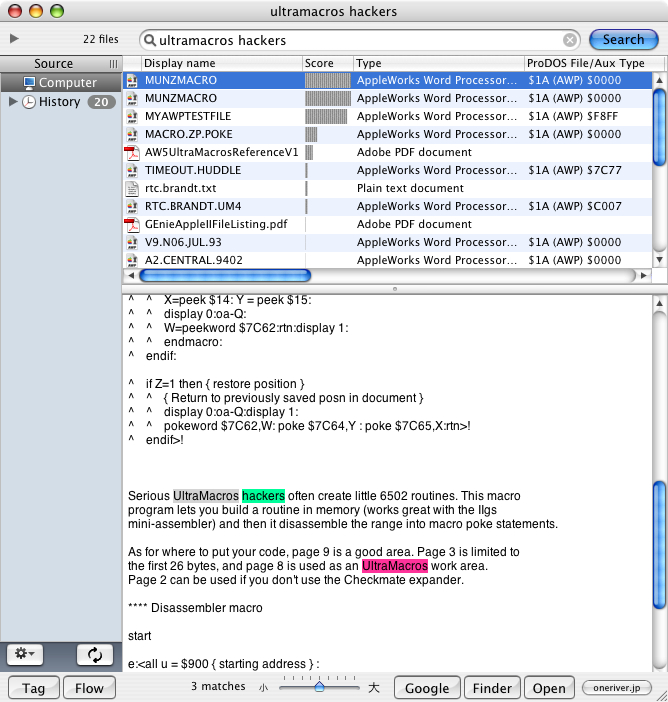 indexes the text content of these files, but also sets (2) ProDOS-related