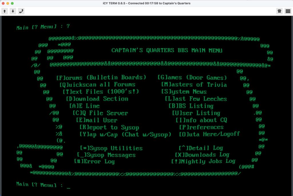 To get a taste of what the BBS world was like in the 1980’s and explore the on screen magic of Icy Term, simply visit telnetbbsguide.com and embark on your own personal nostalgic journey through time. There are a slew of BBS links provided there that will keep you going for hours of fun.